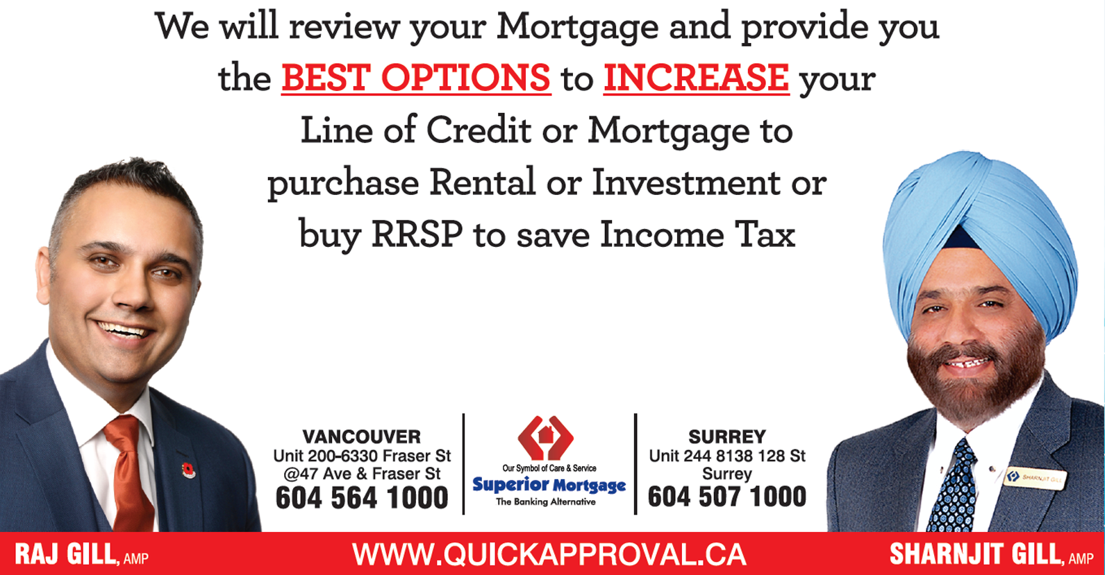 We are the professional mortgage brokers, independent & licensed and Mr Sharnjit Singh Gill, President/CEO of Superior Mortgage Force, is having 52 years of Banking Experience and last one at BMO - Bank of Montreal as Manager, Financial Service- at their Surrey BC and Abbotsford BC Branches
